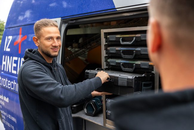 Mitarbeiter von RUIZ + SCHNEIDER bei der Arbeit vor Ort beim Kunden. Hier in Velbert.