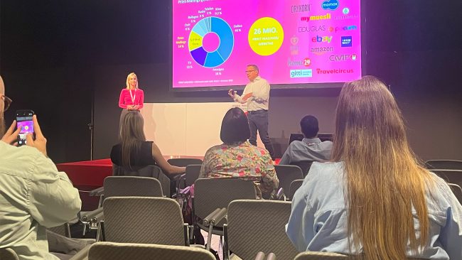 Yvonne Richter (l.) und Torsten Grüske (r.) von der Deutschen Post DHL in der Masterclass zum Thema „Mehrwert statt mehr Mails“